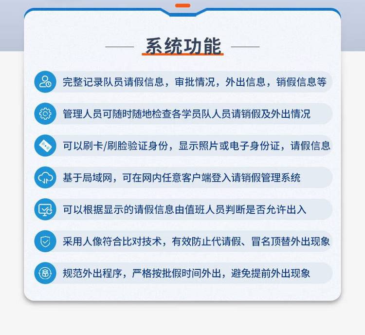 启功人员请销假审批系统营区单位人员考勤门禁出入管理系统 李先生 广东启功实业集团有限公司 189****5873 登录查看完整号码 品牌:启功 发票:增值税电子专用发票 电源:220V 版权号:启功 软件名称:请销假系统 配套附件:道闸等 语言版本:中文 提供单位:启功 加工定制:是 用户数量:10000 适用软件环境:单位 版本语言:简体中文版 软件类型:单位请销假系统 系统平台要求:Windows 7 系统硬件要求:电脑、人脸识别机 版权:启功 技术支持:接口 版本类型:单用户版、网络版、标准版、增强版、家庭版、企业版、正式版、测试版 可售卖地:全国